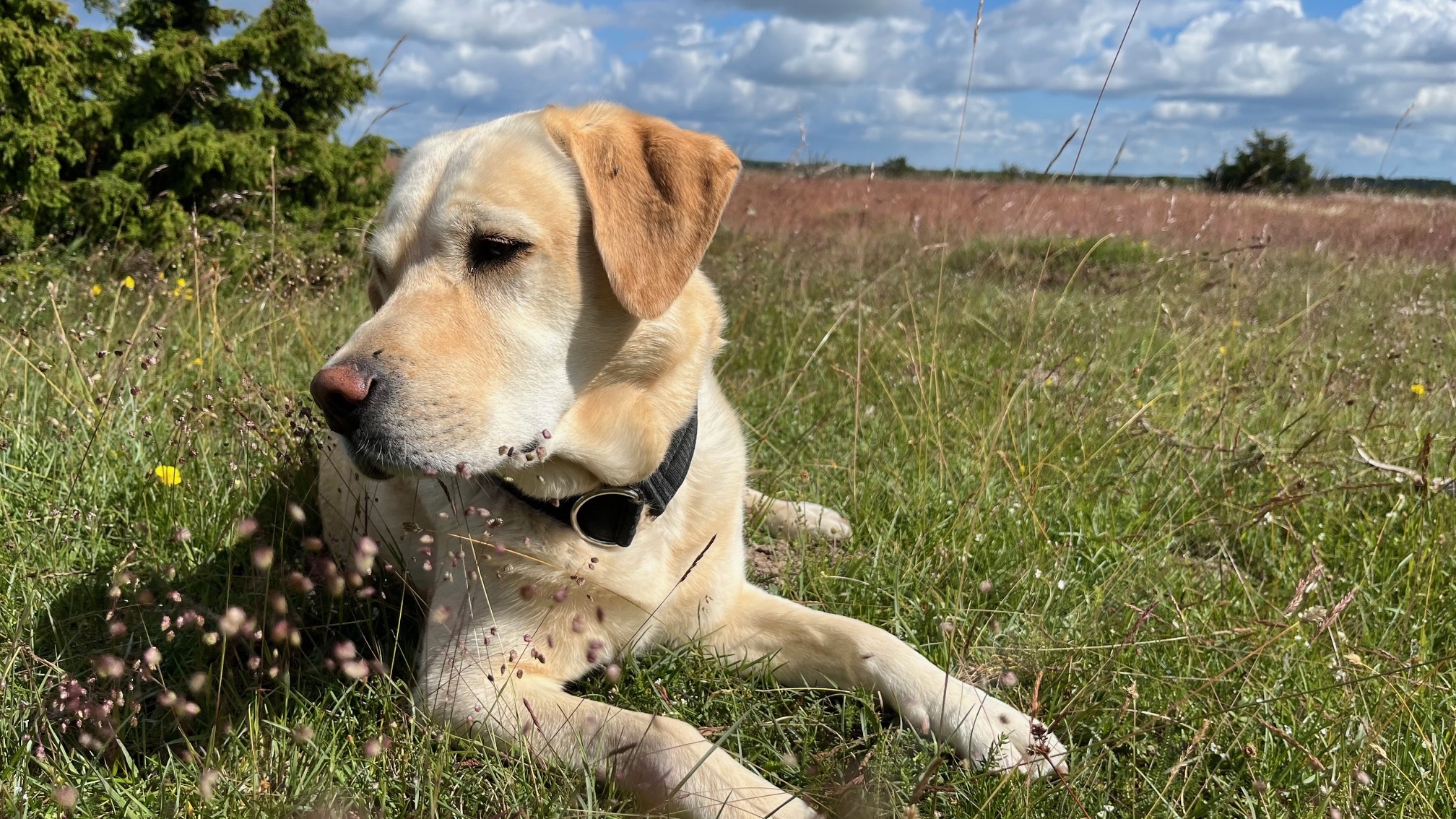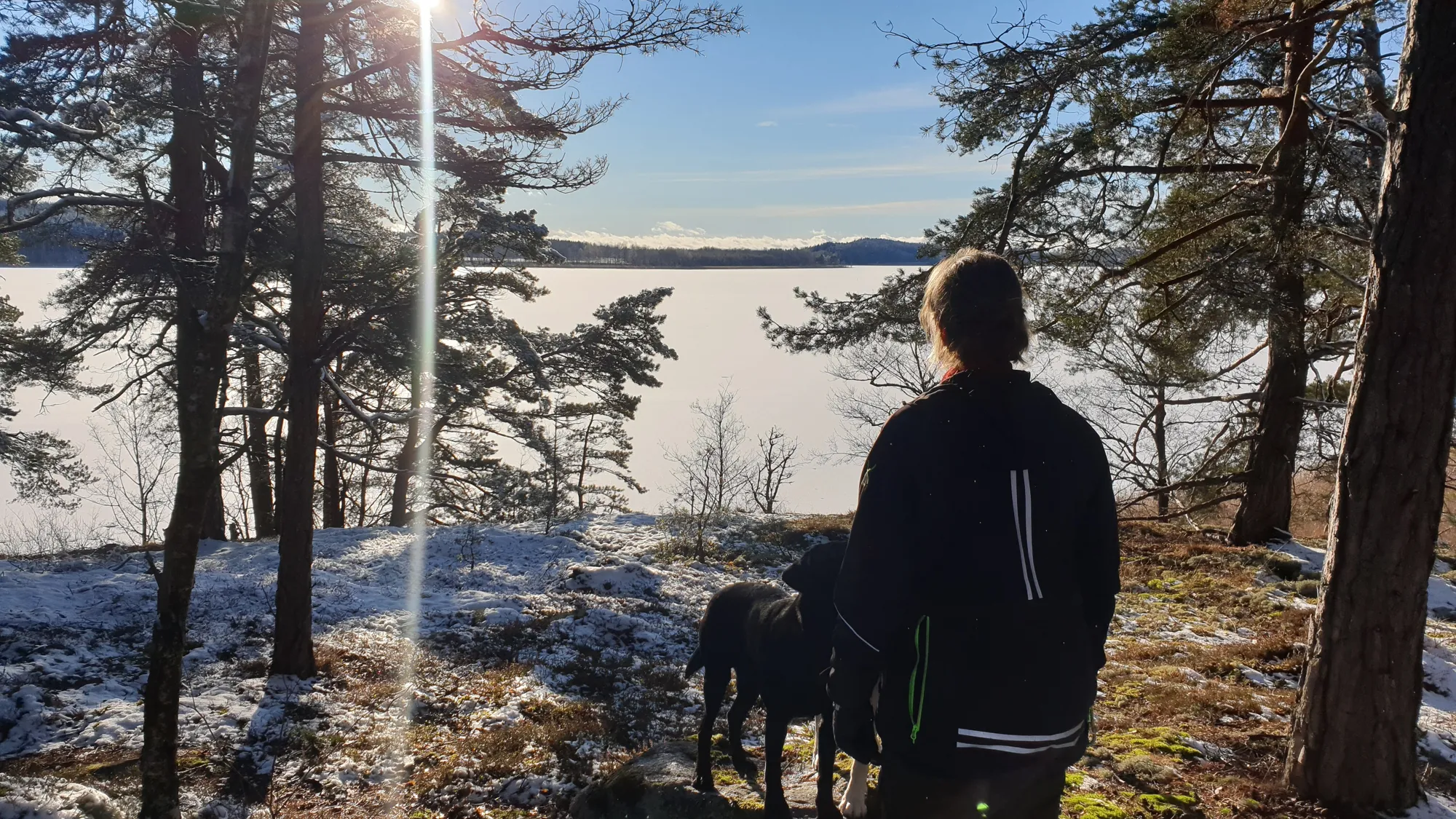 Flera dagliga promenader i skogen och utevistelse i stor hundgård.